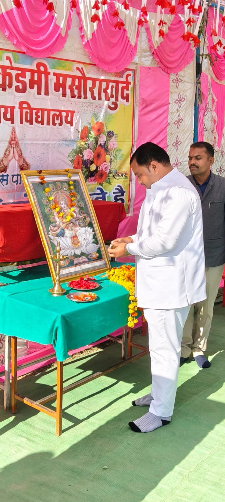 निष्पक्ष जन अवलोकन। अरविन्द कुमार पटेल। ललितपुर। जनपद के आर आर अकेडमी मसौरा खुर्द में दो दिवसीय बाल क्रीड़ा प्रतियोगिता का मगंलवार को आयोजन किया। मुख्य अतिथि जिलाध्यक्ष सुजान सिंह पटेल ने सर्वप्रथम मां सरस्वती के चित्र पर माल्यार्पण, द्वीप प्रज्वलित कर वंदना की। और अपने उदबोधन में शिक्षा के साथ खेल एवं सांस्कृतिक प्रतिभा का विकास आवश्यक बताया। बुंदेलखंड कुर्मी क्षत्रिय कल्याण समिति के जिलाध्यक्ष सुजान सिंह पटेल ने बच्चों को मैडल प्रदान किये। ।जिसमें बच्चों की दौड़ ,रिलेरेस,गोला फेंक,डिस्कस थ्रो,ऊंची कूंद, लंबी कूंद, खो-खो,बॉलीबाल, गुब्बारा दौड़ प्रतियोगिताओं में बच्चों ने प्रतिभाग किया। जूनियर स्तर एवं सीनियर स्तर प्रतियोगिता में दौड़ में आकाश, अंश राजा, रविन्द्र कुमार ने प्रथम स्थान प्राप्त किया।रिलेरेस में अंश राजा,सौरभ यादव,राकेश ने प्रथम स्थान प्राप्त किया। । प्रबंधक नरहरि गौर द्वारा सभी आगंतुक अतिथियों का माला पहनाकर स्वागत अभिनंदन किया। अतिथियों द्वारा सभी विजयी प्रतिभागी बच्चों को मैडल पहना कर सम्मानित किया गया। इस अवसर पर राजेश पटेल कुम्हेडी, जय पटेल मसोरा,राजेश प्रजापति व्यायाम शिक्षक,अरविंद राजा प्रधानचार्य, राम जी पटेल,अंकित पस्तोर, अनिल कुमार,गौर सर ,सहित सैकड़ों बच्चे उपस्थित रहे।