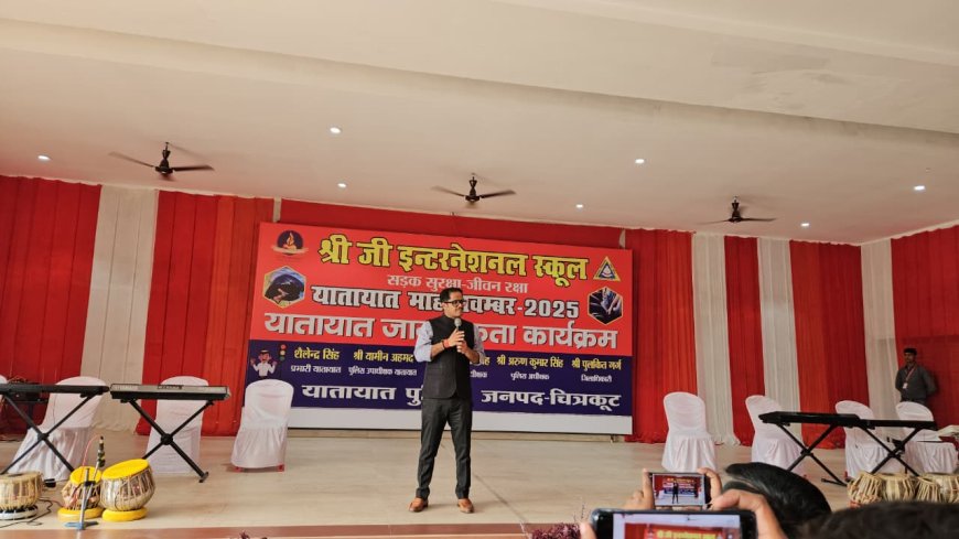 निष्पक्ष जन अवलोकन शिवसंपत करवरिया। चित्रकूट ।जिलाधिकारी चित्रकूट पुलकित गर्ग एवं पुलिस अधीक्षक चित्रकूट अरुण कुमार सिंह की की उपस्थिति में श्री जी इंटरनेशनल स्कूल कर्वी में यातायात जागरुकता कार्यक्रम का आयोजन किया गया। जिसके माध्यम से छात्र/छात्राओं को यातायात नियमों के सम्बन्ध में जागरूक किया गया। कार्यक्रम में जिलाधिकारी द्वारा छात्र/छात्राओं को यातायात नियमों की जानकारी दी गई तथा सड़क दुर्घटनाओं की रोकथाम हेतु सावधानियाँ अपनाने के संबंध में विस्तृत रूप से जागरूक किया गया। पुलिस अधीक्षक द्वारा वाहन चलाते समय हेलमेट एवं सीट बेल्ट के प्रयोग, नाबालिगों द्वारा वाहन न चलाने, नशे की हालत में ड्राइविंग से बचने तथा सड़क पर निर्धारित गति सीमा का पालन करने जैसी आवश्यक बातें बताई गई साथ ही साथ कार्यक्रम में उपस्थित बच्चों को यातायात नियमों का पालन करने और अपने माता-पिता,परिवार व समाज को भी इसके प्रति जागरूक करने का संदेश दिया गया। यातायात जागरूकता के महत्वपूर्ण निर्देश- हेलमेट एवं सीट बेल्ट जीवन रक्षा का सबसे सरल और प्रभावी माध्यम हैं । नाबालिगों द्वारा वाहन चलाना न केवल कानूनन अपराध है, बल्कि दुर्घटना की गंभीर संभावना भी बढ़ाता है । नशे की हालत में वाहन चलाना सड़क पर स्वयं एवं दूसरों के लिए बड़ा खतरा है । वाहन चलाते समय मोबाइल फोन का प्रयोग एक सेकंड की चूक में जीवन-घातक दुर्घटनाओं का कारण बन सकता है। ओवरस्पीडिंग उत्साह नहीं, बल्कि जीवन के लिए गंभीर जोखिम है । इस दौरान जिला कॉरपोरेटिव बैंक बांदा/चित्रकूट अध्यक्ष पंकज अग्रवाल, क्षेत्राधिकारी यातायात यामीन अहमद एवं अन्य अधिकारी/कर्मचारीगण उपस्थित रहें।