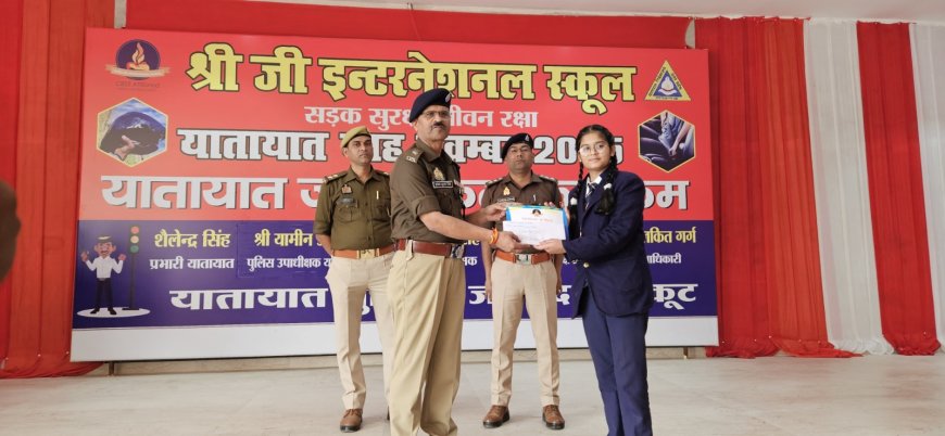 जिलाधिकारी एवं पुलिस अधीक्षक की उपस्थिति में श्री जी इंटरनेशनल स्कूल कर्वी में यातायात जागरुकता कार्यक्रम का आयोजन किया गया।