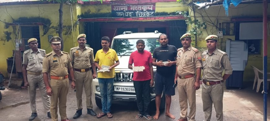 निष्पक्ष जन अवलोकन। । शिवसंपत करवरिया। चित्रकूट।पुलिस अधीक्षक चित्रकूट अरुण कुमार सिंह के कुशल निर्देशन में अपराध पर अंकुश लगाने हेतु अपराधियो के विरुद्ध की जा रही कार्यवाही के क्रम में प्रभारी निरीक्षक भरतकूप मनोज कुमार के मार्गदर्शन में थाना भरतकूप पुलिस टीम ने 03 अभियुक्तों को चोरी का एक अदद ट्रक न0 UP54BT5035, 01 अदद चोरी में प्रयोग होने वाली बोलेरो गाड़ी, 01 अदद देशी तमंचा 315 बोर,02 अदद जिन्दा कारतूस 315 बोर,03 अदद मोबाइल फोन , 01 अदद फर्जी नम्बर प्लेट बरामद के साथ गिरफ्तार किया। उल्लेखनीय है कि दिनांक 29.09.2025 को वादी विशाल सिंह पुत्र देवनाथ सिह निवासी मुंशीपुर जनपद मऊ उ0प्र0 द्वारा थाना भरतकूप में सूचना दिया गया कि उनकी गाडी सं0 UP54BT5035 ट्रक गोबरिया रोड थाना भरतकूप में सड़क के किनारे खडा था जो कि दिनांक 26/27.09.2025 की रात्रि को चोरी हो गया, सभी सम्भांवित स्थानों पर पता किया किन्तू पता नही चला। इस सूचना पर थाना भरतकूप मु0अ0सं0 167/25 धारा 303(2) बीएनएस बनाम अज्ञात चोर पंजीकृत किया गया । पुलिस अधीक्षक द्वारा चोरी की घटना के सफल अनावरण हेतु प्रभारी निरीक्षक भरतकूप को निर्देशित किया गया था। दिनांक 01.10.2025 को अपराध निरीक्षक भरतकूप अभयराज सिंह मय हमराह उ0नि0 बलवन्त यादव ,उ0नि0 अतीन्द्र सिंह, का0 प्रवीण पाण्डेय, का0 शुभम , का0 रणवीर सिंह के मय प्राईवेट वाहन से देखभाल क्षेत्र, शान्ति व्यवस्था,तलाश वांछित वारण्टी व मु0अ0सं0- 167/25 धारा 303(2) B.N.S से सम्बन्धित माल मुल्जिम के सुरागरसी पतारसी हेतु भरतकूप तिराहे से बांदा की तरफ जा रहे थे कि मुखबिर खास ने गाडी रोकवाकर बताया कि साहब आप जिस चोरी के ट्रक की तलाश कर रहे है उस ट्रक को उसी के ट्रक के ड्राईवर राजबली उर्फ पिन्टू पुत्र देवराज पाल निवासी गडरियन पुरवा रौली कल्याणपुर थाना भरतकूप ने अपने साथियों के साथ मिलकर चोरी किया है और वह अपने साथियों के साथ चोरी के ट्रक के साथ मड़फा मंदिर के आगे सुनसान सड़क पर एक बोलेरो गाड़ी के साथ खड़ा है यदि जल्दी किया जाये तो आपके मुकदमे का ट्रक बरामद हो सकता है ।इस सूचना पर विश्वास करके थाना भरतकूप मुखबिर के उसके बताये स्थान की ओर चल दिये ।मुखबिर ने मड़फा मंदिर से आगे गाड़ी रुकवाकर ईशारा कर बताया कि साहब सामने जो सफेद रंग के बोलेरो गाड़ी तथा उसके आगे सफेद रंग का इंजन व बादामी रंग की बाडी सहित ट्रक खड़ा है ,वही आपके मुकदमे मे चोरी गया ट्रक है। और मुखबिर चला गया । भरतकूप पुलिस छिपते छिपाते पैदल पैदल खड़ी बोलेरो गाड़ी व ट्रक के पास पहुंची जैसे ही ट्रक का ड्राईवर साईड का दरवाजा खोला तभी अचानक दूसरी साईड का गेट खोलकर एक व्यक्ति अंधेरे का फायदा उठाकर भाग गया जिसका पीछा किय़ा गया लेकिन अंधेरे होने के कारण पकड मे नही आ सका तथा एक व्यक्ति को ट्रक से एवं बोलेरो मे बैठे द