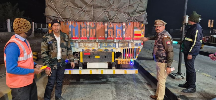 यातायात पुलिस ने कोहरे आदि के दृष्टिगत रखते हुए बीघाखेत टोल प्लाजा पर व्यावसायिक वाहनों में रेट्रो रिफ्लेक्टिव टेप चस्पा किए