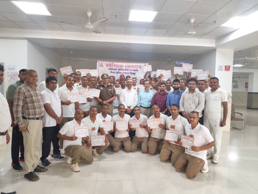 रक्तदाता पुलिस वीरों का शतक” पुलिस अधीक्षक द्वारा शैयायुक्त संयुक्त चिकित्सालय खोह चित्रकूट में रक्तदान करने वाले रिक्रूट आरक्षियों को प्रशस्ति प्रमाण पत्र दिया गया